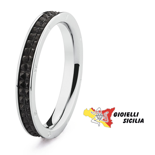 Anello/Fedina BROSWAY collezione “BULLET” lucido con quadrati in PVD nero