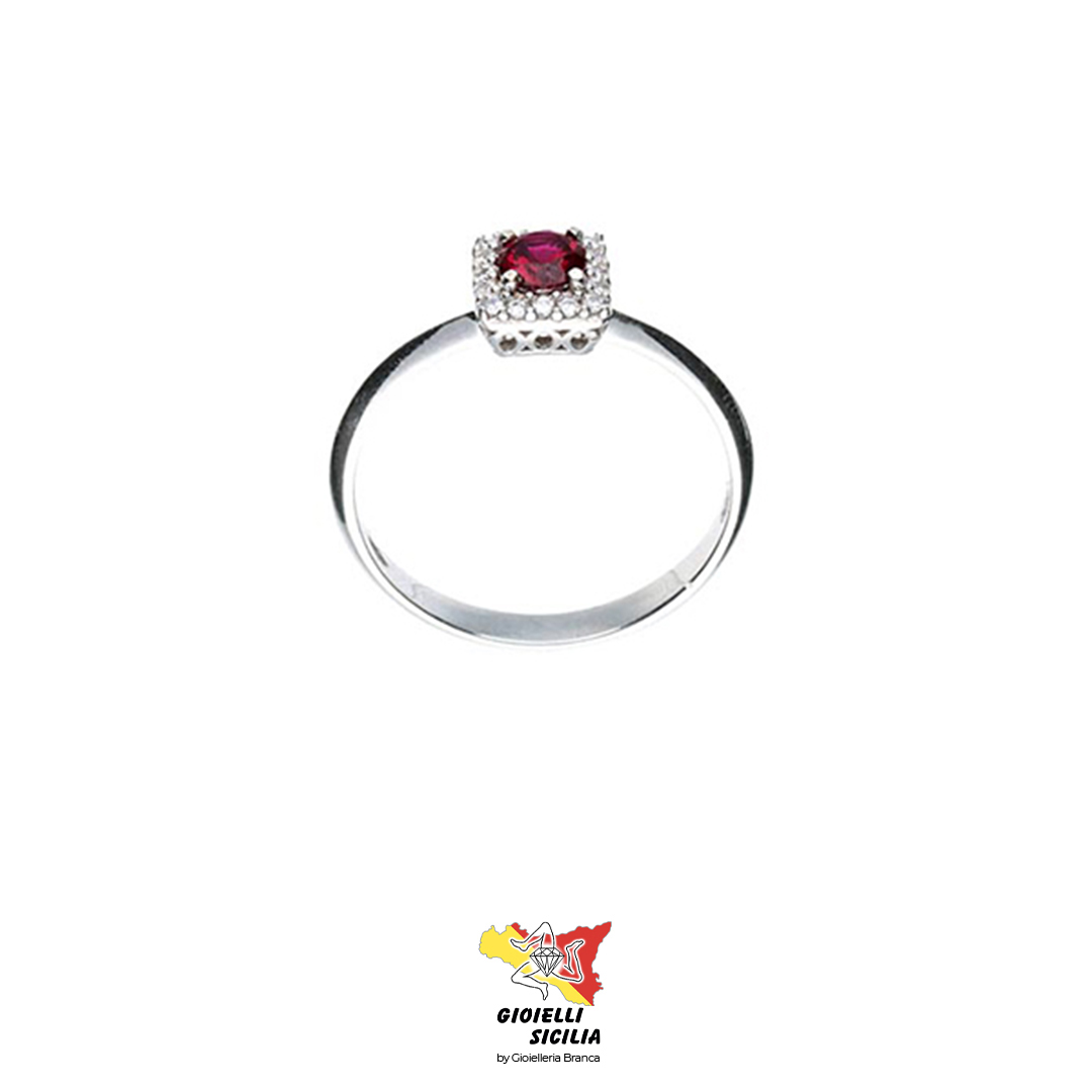 Modello Pietra Colore Rossa con contorno di zirconi bianchi lateralmente