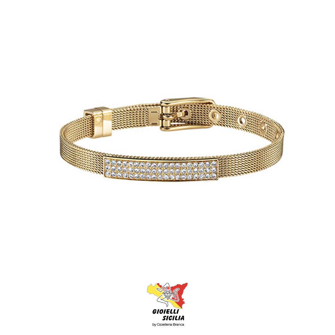 Corpo morbido con Targhetta centrale con cristalli Swarovski e bracciale maglia Milano