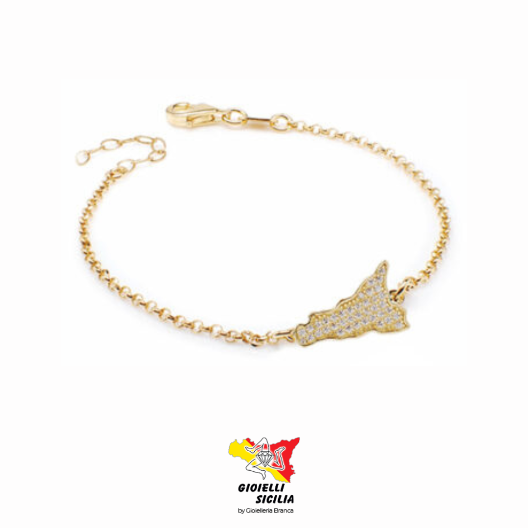 Il bracciale MY SICILY è un gioiello che celebra l’essenza e la bellezza dell’isola, realizzato in Argento 925‰ con finitura PVD Oro Giallo. Il motivo centrale è la Sicilia, raffigurata nella sua iconica forma triangolare, completamente impreziosita da un tappeto di cristalli Swarovski bianchi che donano luce ed eleganza.