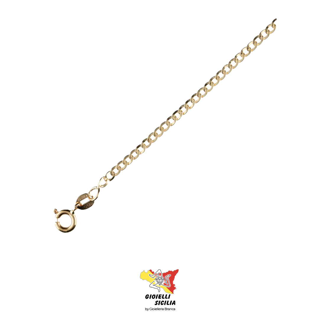 Con un peso di 1,60 gr. e una lunghezza di 19 cm, è dotato di una chiusura ad anelletto semplice con molla. Comodo da indossare ogni giorno per avere con se un monile in Oro. Per chi è amante di un modello tutto uniforme e regolare.