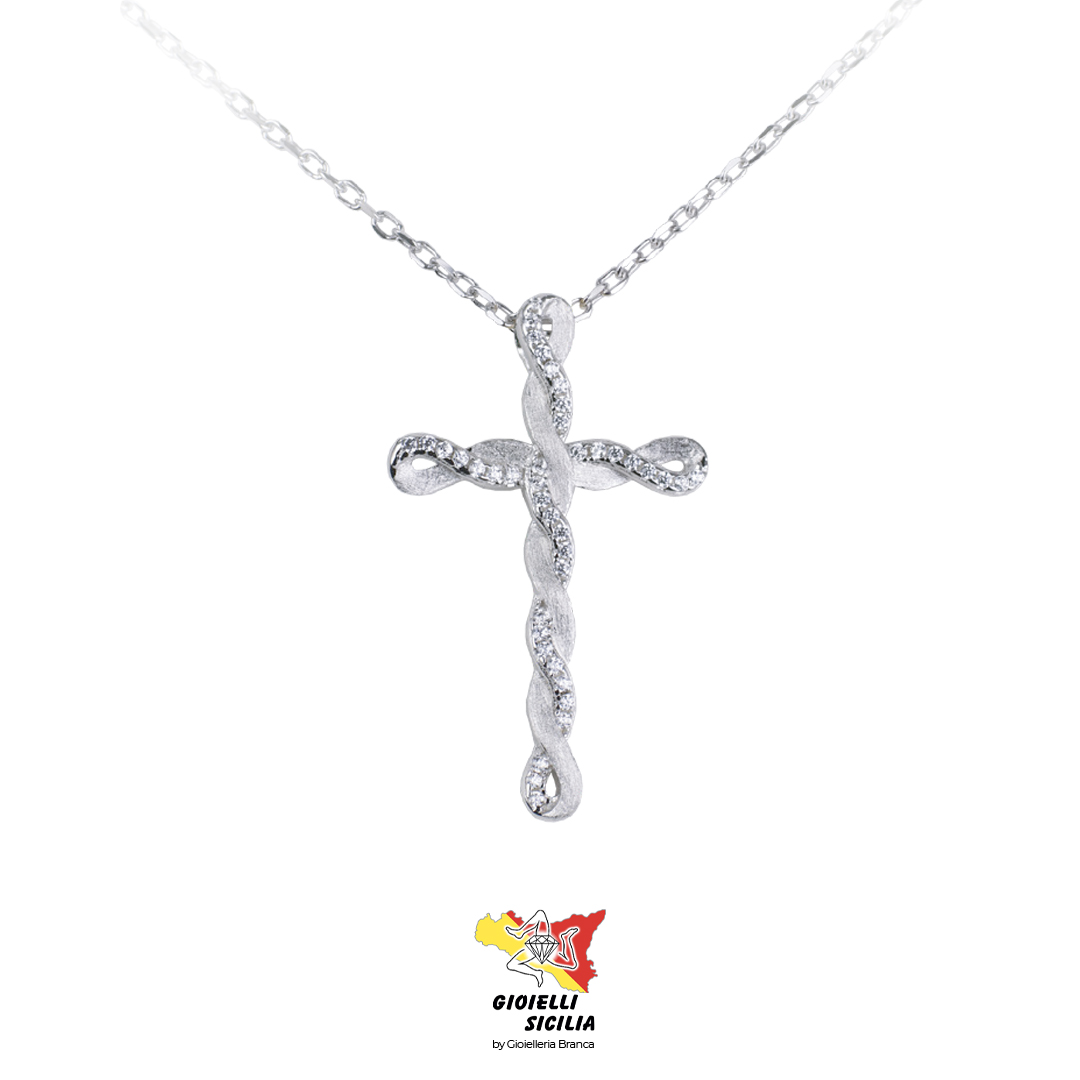 La croce è completamente decorata da zirconi bianchi, che catturano la luce e donano al gioiello una brillantezza straordinaria, rendendolo perfetto per ogni occasione, dal quotidiano agli eventi più eleganti.