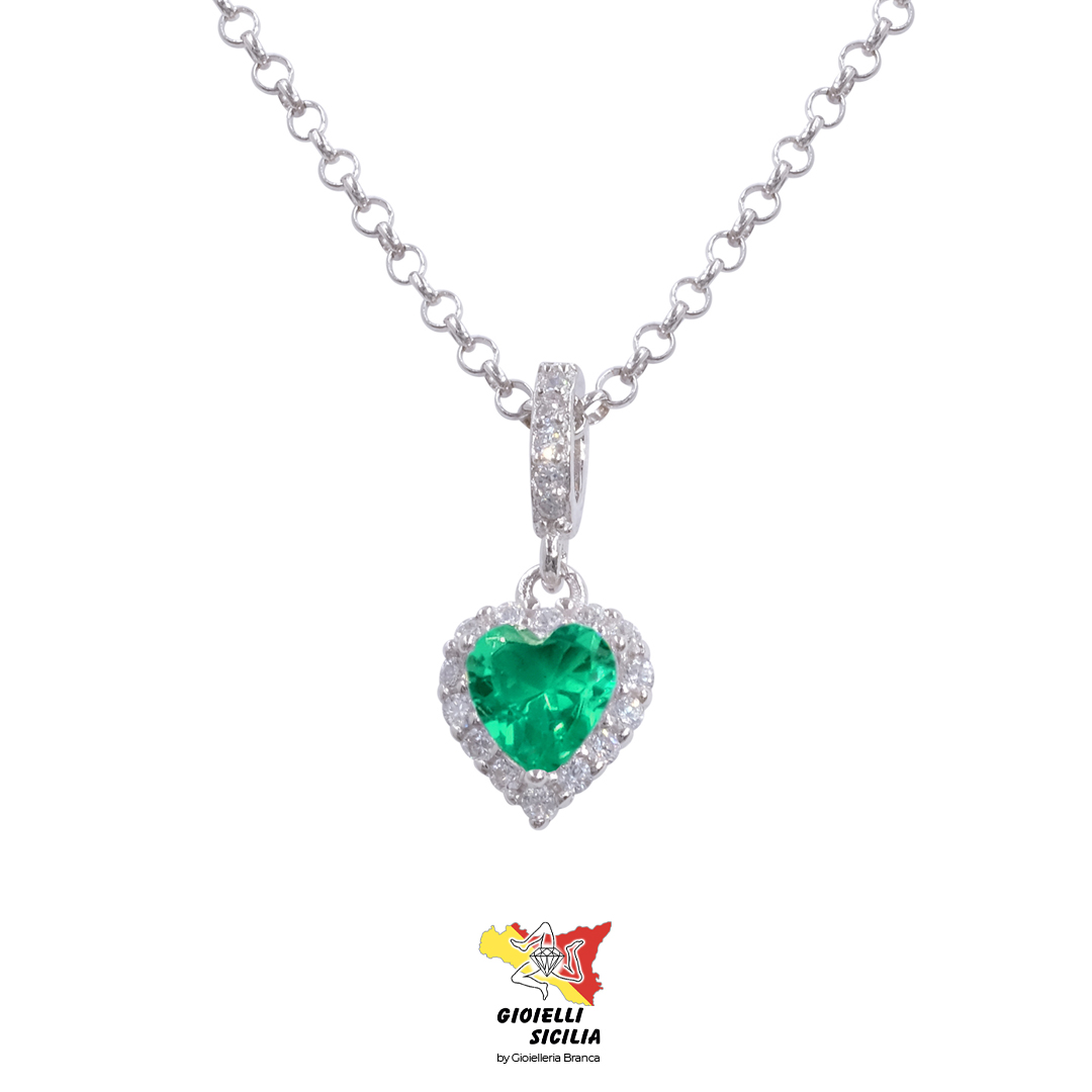 Questa splendida collana FOGI 925 della collezione Heart è un gioiello che unisce eleganza e romanticismo. Il protagonista è un magnifico Swarovski centrale a forma di cuore, di un intenso colore verde, incastonato con tre griff per esaltarne la luminosità e la brillantezza. A incorniciare il cuore centrale, un delicato contorno tempestato di Swarovski bianchi, che dona un tocco di raffinatezza e luce al gioiello.