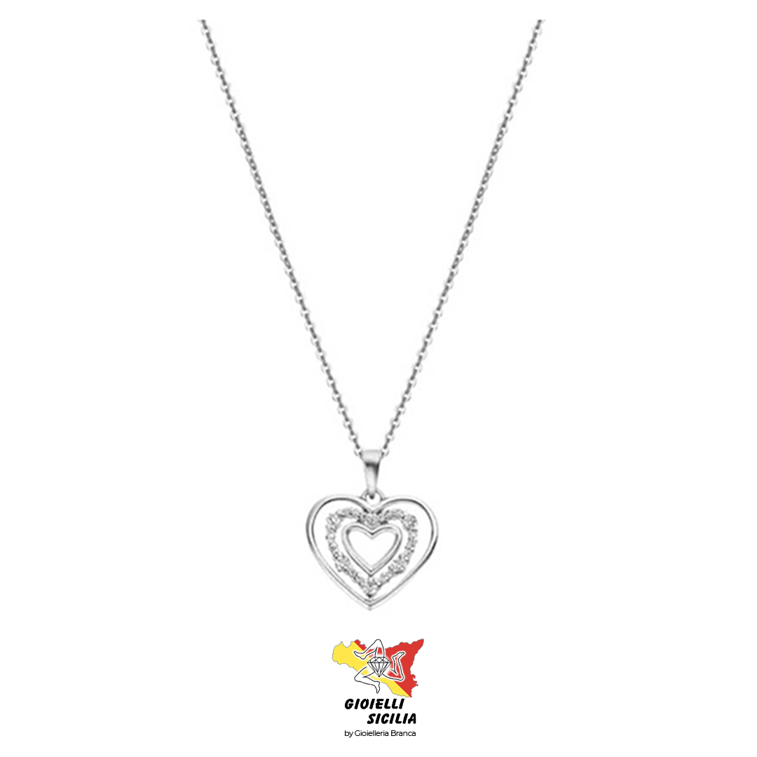Con pendente composta da 3 cuori, i due esterni lucidi, quello interno con Swarovski