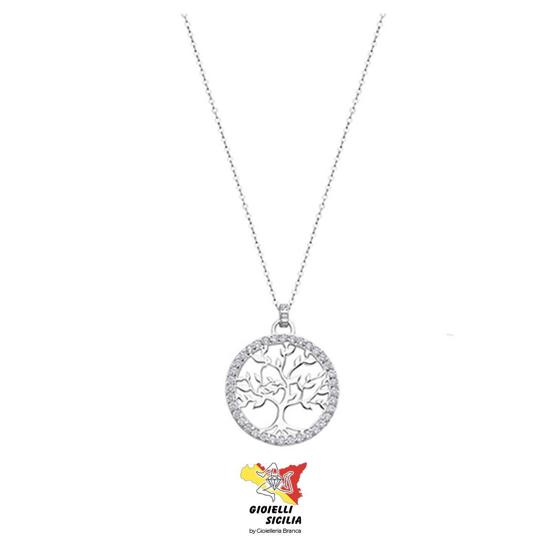 Collana LOTUS SILVER collezione “Tree Of Life” con Albero della Vita in PVD rodio