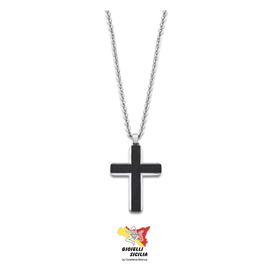 Ciondolo a forma di Croce con parte superiore in PVD Nero