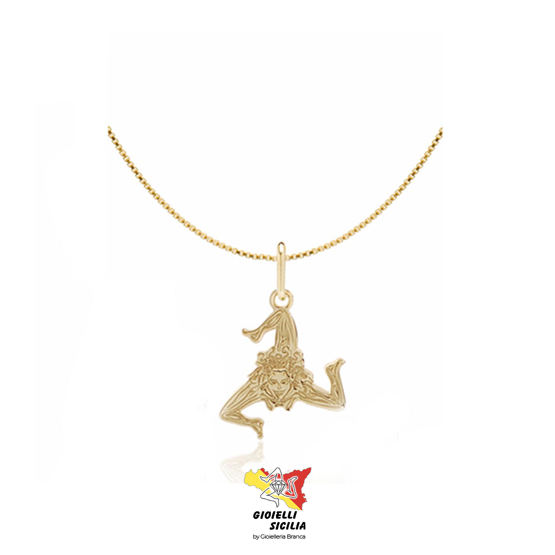 La collana My Sicily in Argento 925 con finitura in PVD oro giallo è un omaggio elegante e luminoso alla cultura e alla simbologia dell’isola siciliana. Al centro della scena troviamo la Trinacria, l’inconfondibile testa alata con tre gambe, emblema millenario che racchiude in sé la storia, l’energia e il mistero della Sicilia. Questo simbolo potente, ricco di significati mitologici e culturali, diventa il cuore pulsante di un gioiello che racconta con stile l’identità di una terra unica.