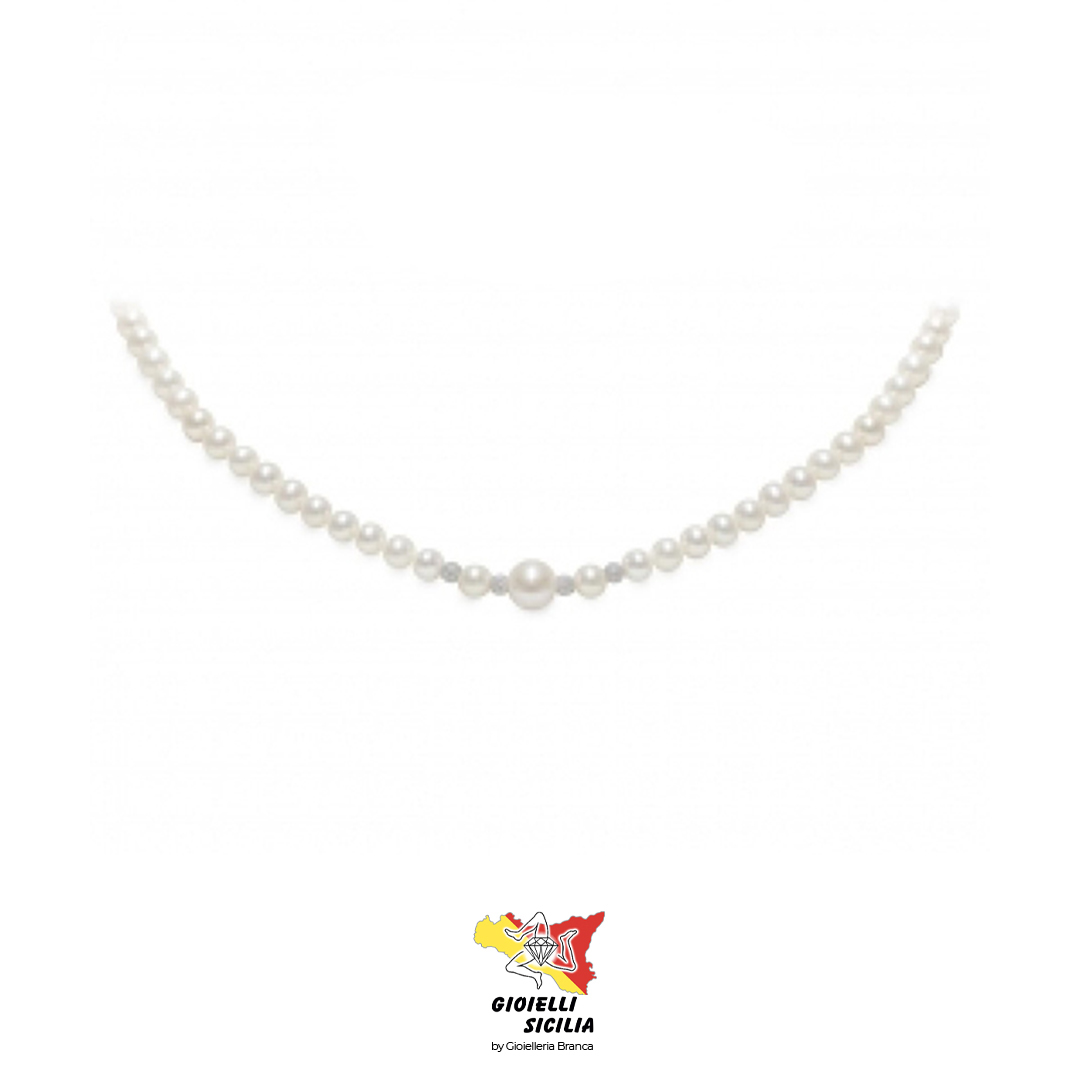 Girocollo/Collana MAYUMI con perle montate in oro bianco 18KT. 750 °/oo con finitura in PVD rodio
