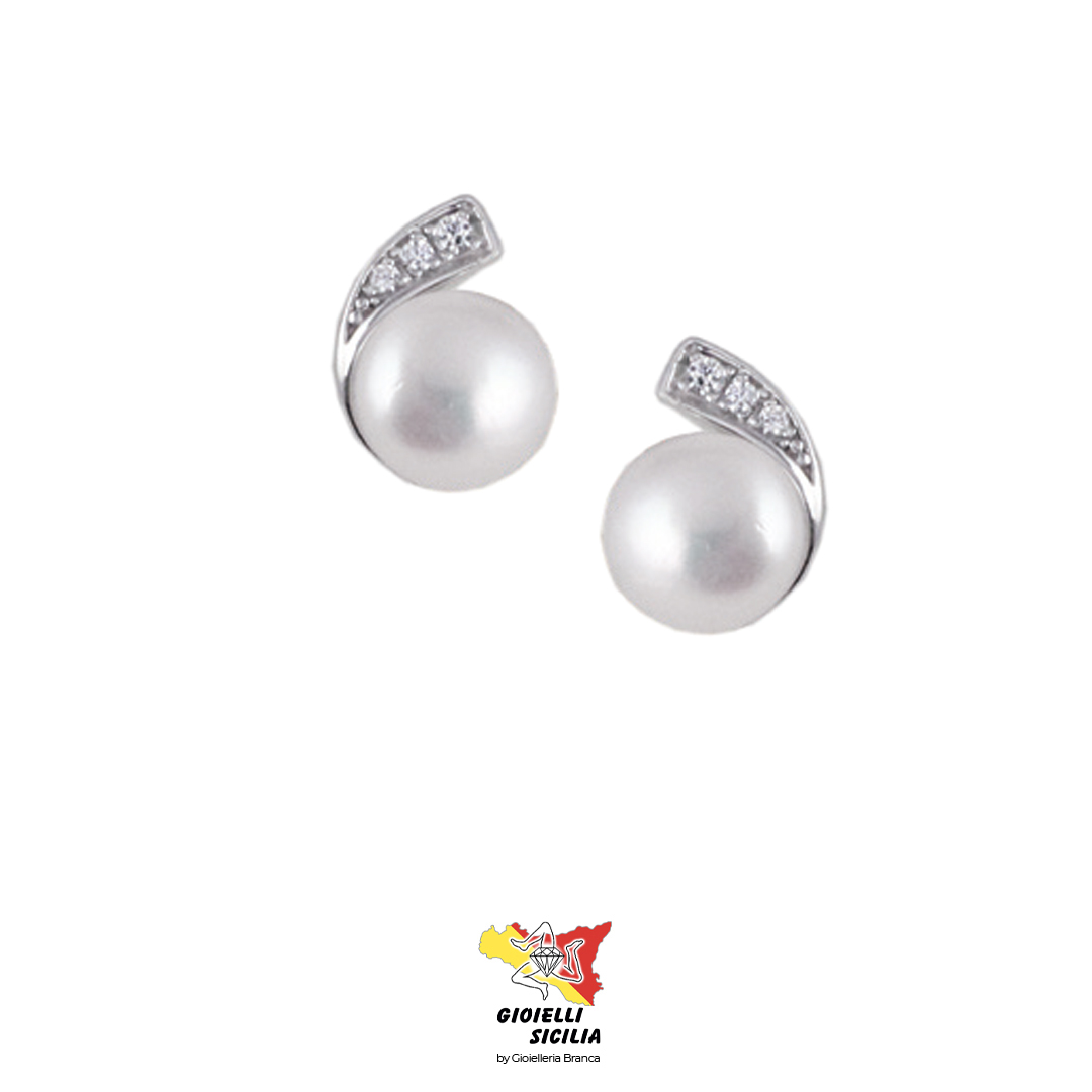 Forma da una perla centrale, ed arricchiti da Swarovski bianchi su base PVD Rodio.