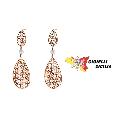 Modello pendente lungo con motivi a forma di gocce traforate superiori ed inferiori