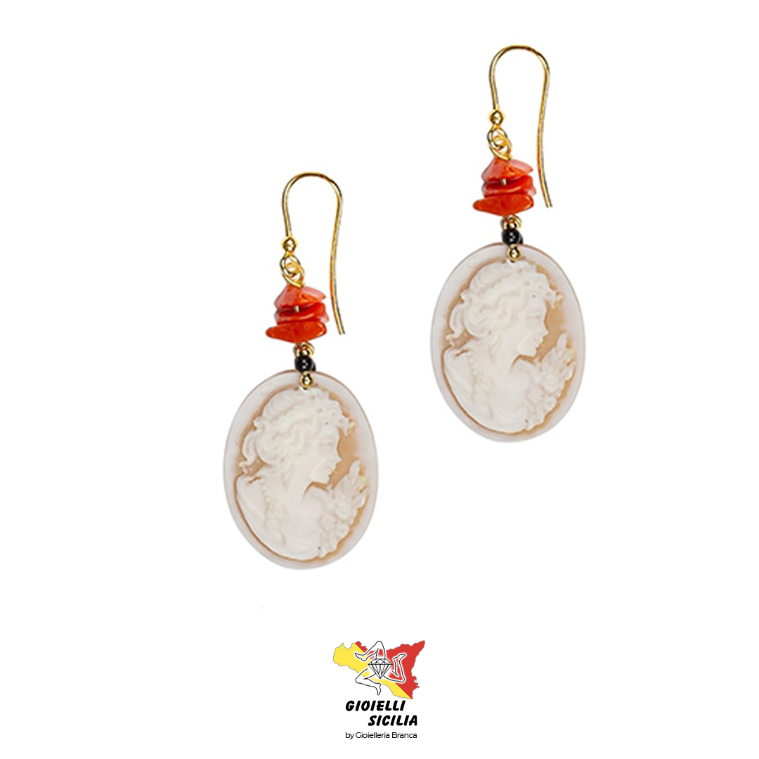 Orecchini NOESA Jewels in argento 925°/oo corallo cameo e onice